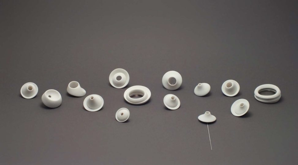Materials: porcelain, silver, used glass lenses